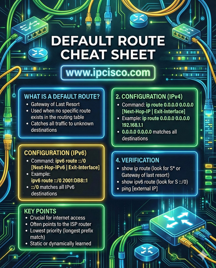 Default route is a common lesson for Cisco CCNA, CCNP ENCOR and CCIE Certification exams. This lesson is also asked too much in network engineer interviews as technical job interview question.
